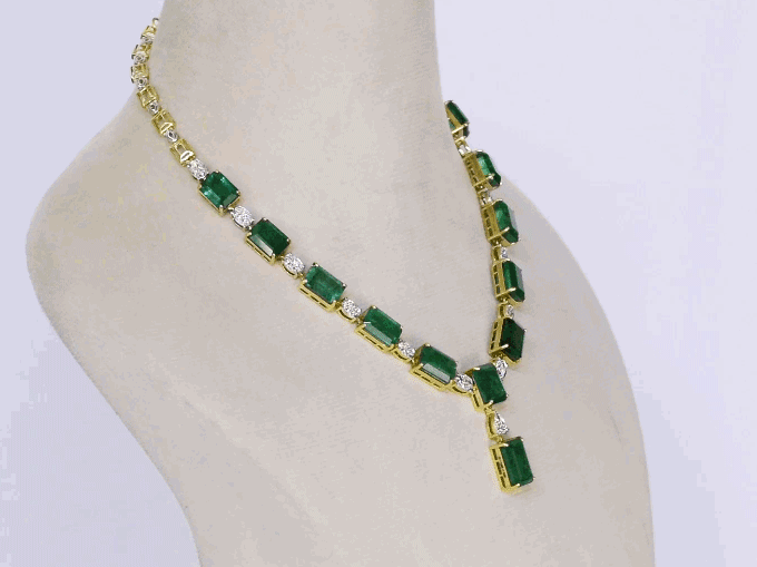 Exquisite necklace and earring pair featuring octagon-shaped emeralds accented with sparkling round diamonds—a perfect blend of luxury, elegance, and timeless beauty for any special occasion.(PGDNE0143)